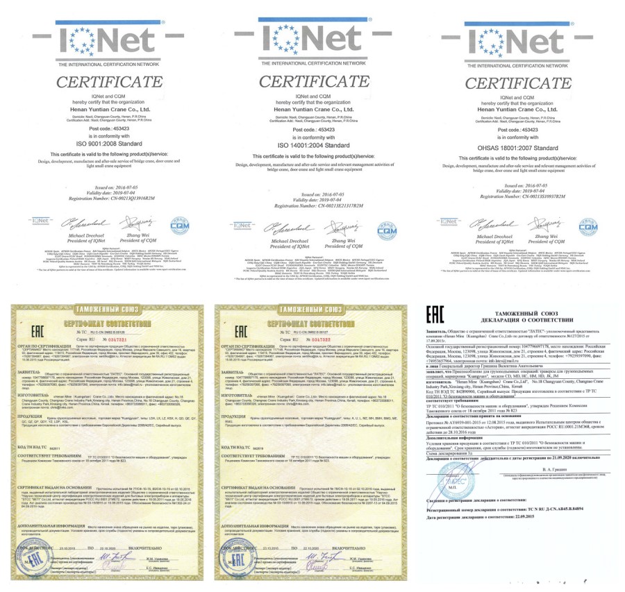 हमारे क्रेन सीई, आईएसओ, गोस्ट, एसजीएस, टीयूवी, बीवी, और इतने पर पारित किया गया है।